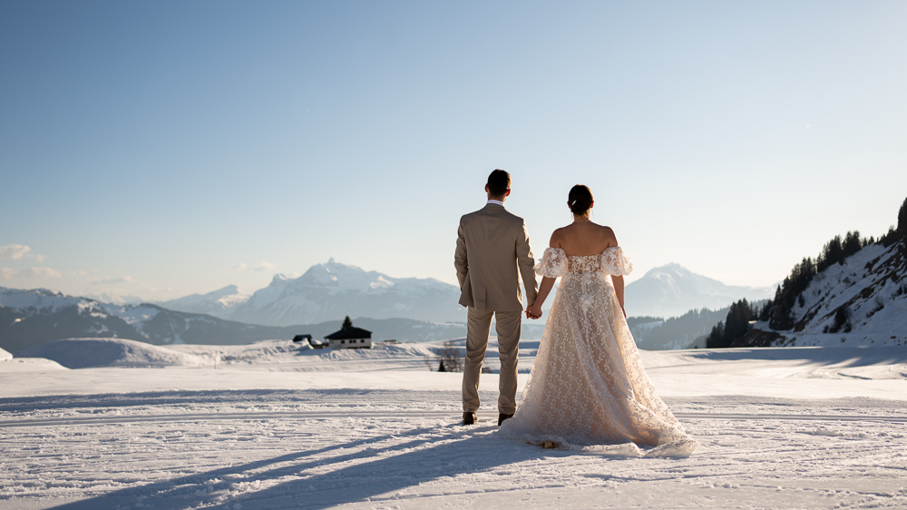 Et quoi de plus beau qu’une séance photo de rêve au coucher du soleil dans la neige, au cœur de la Haute-Savoie, pour écrire la suite de votre histoire ?