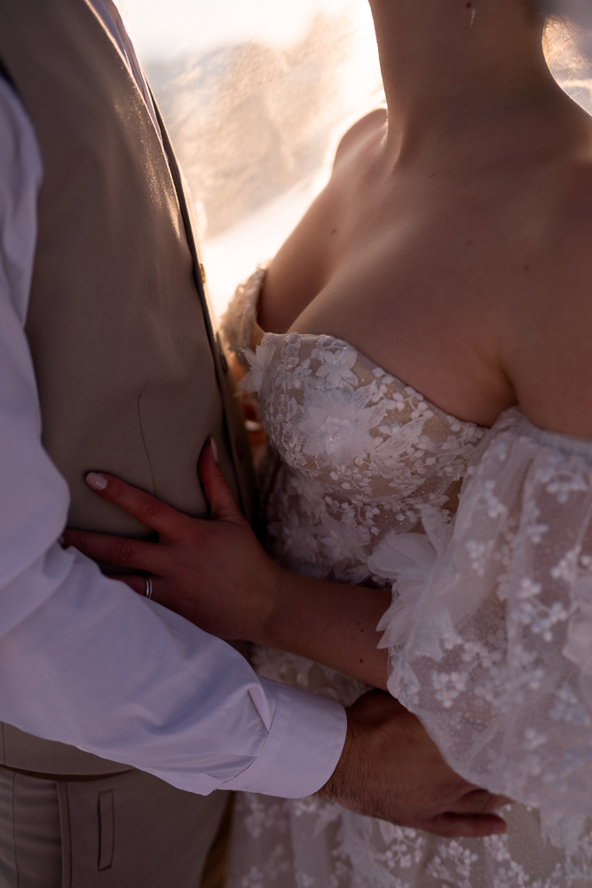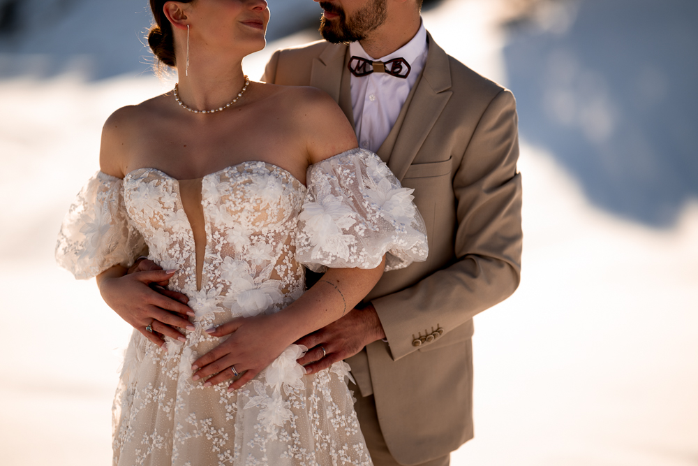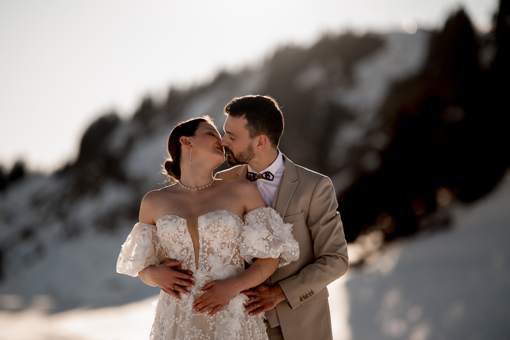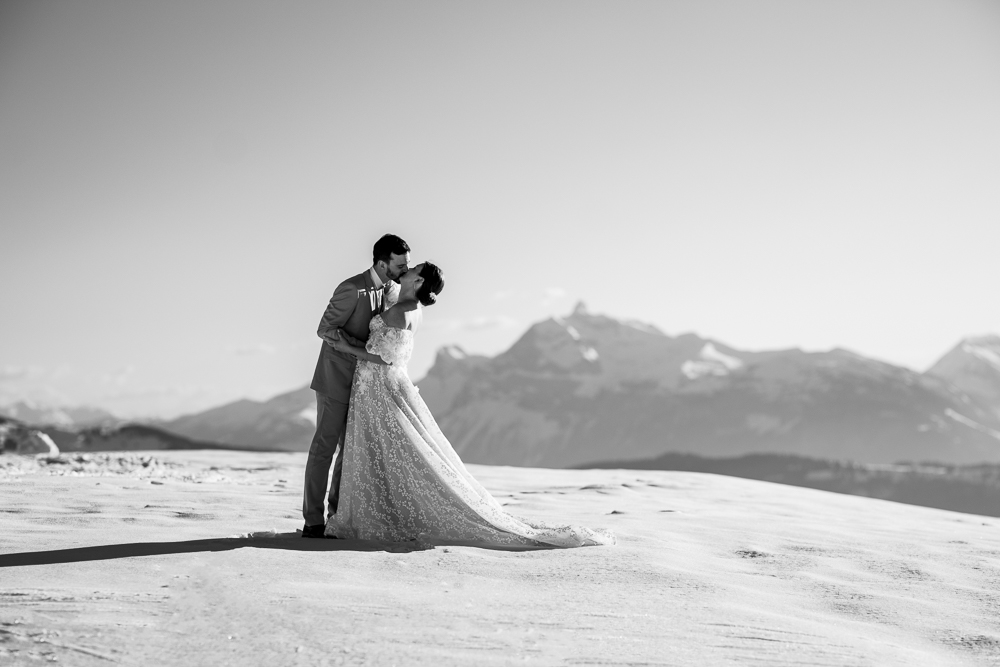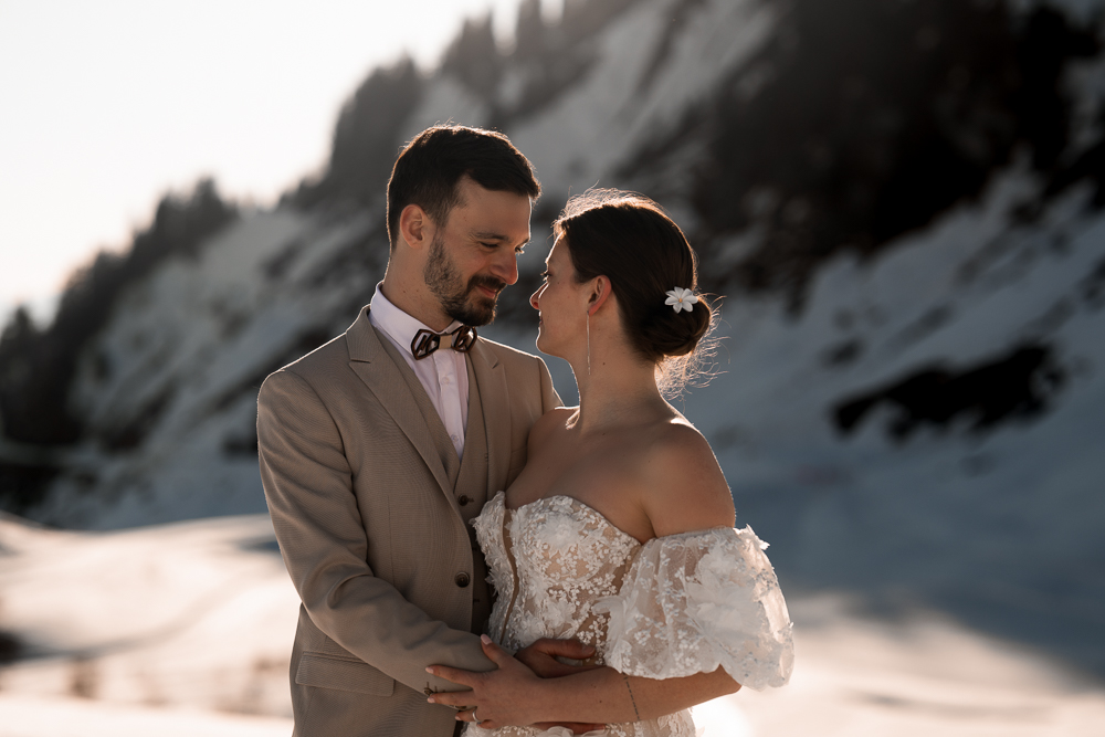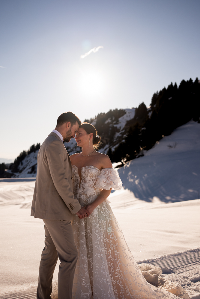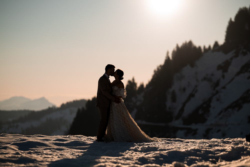 /    /  Séance After Day au col de Joux-Plane – Séance après mariage en Haute-Savoie au coucher du soleil dans la neige
